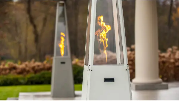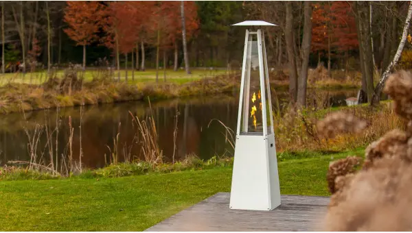 Обігрівач UMВRELLА заповнюється рідинним газом з пляшки, захованої в порталі. Полум’я зачиняється у скляній камері, яка захищає нас від прямого контакту з вогнем.