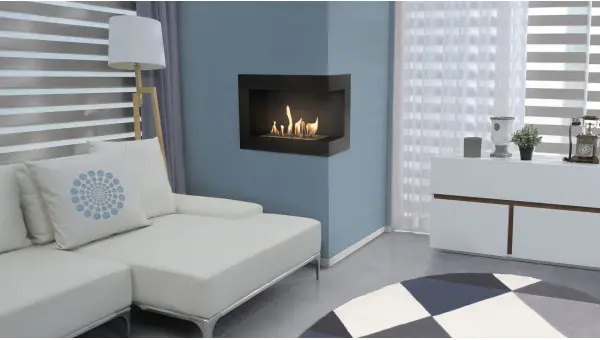 Благодаря двустороннему созерцанию огня, панорамному виду и деликатной передней рамке отлично вписывается в стилистику современных интерьеров.
