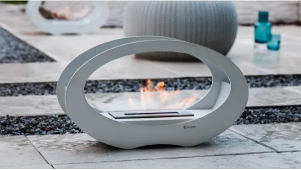 Биокамин с овальной формой и формой, гармонично впишется в декор современного интерьера или украсит террасу.